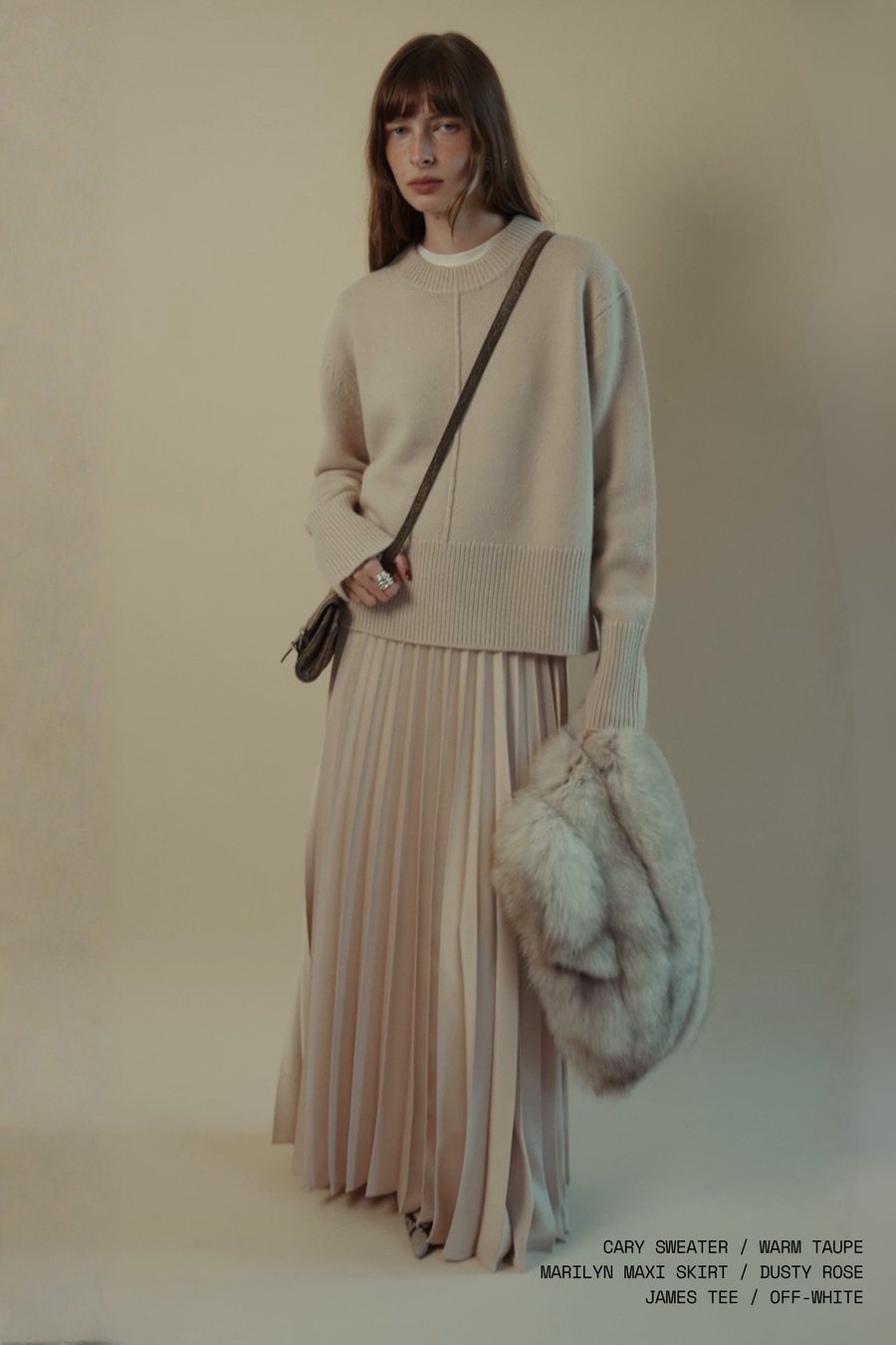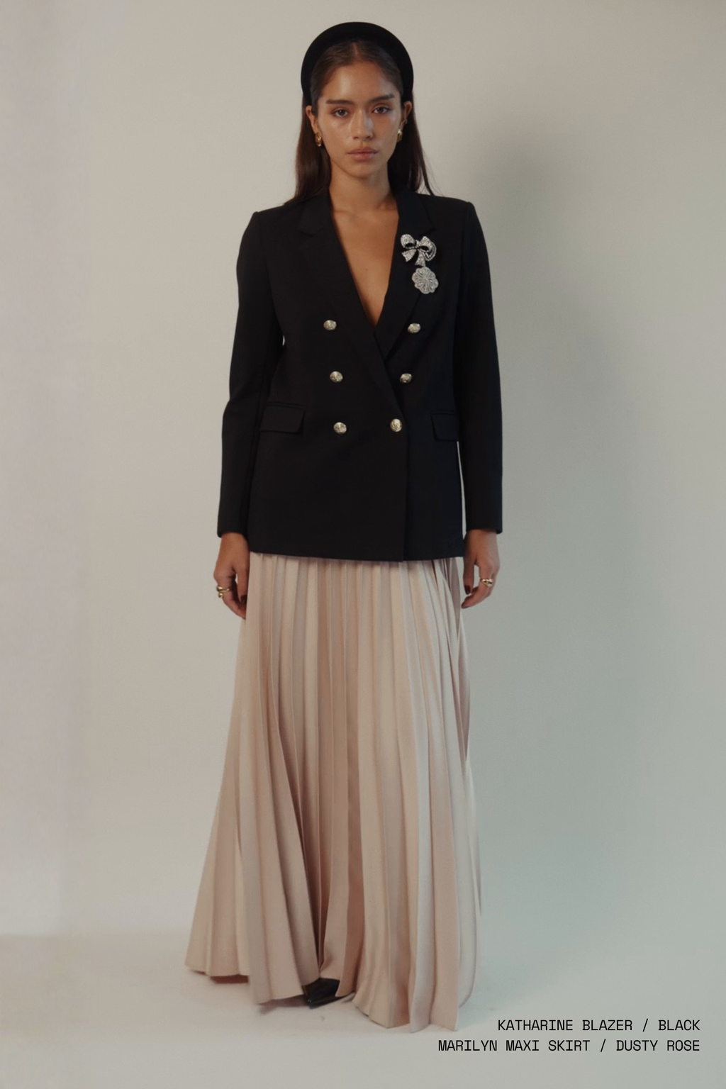 Marilyn Accordion-Pleated Maxi Skirt in Dusty Rose