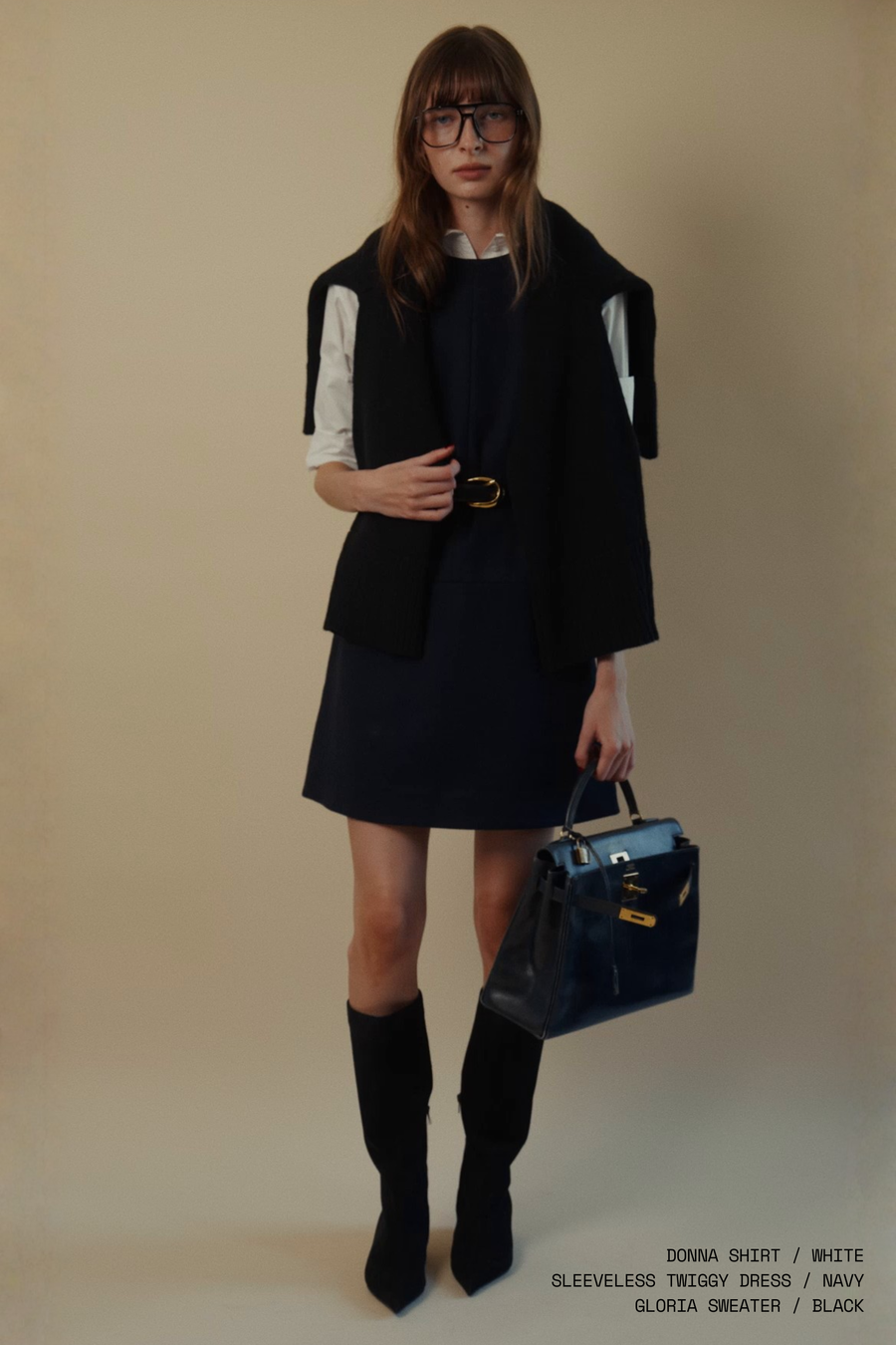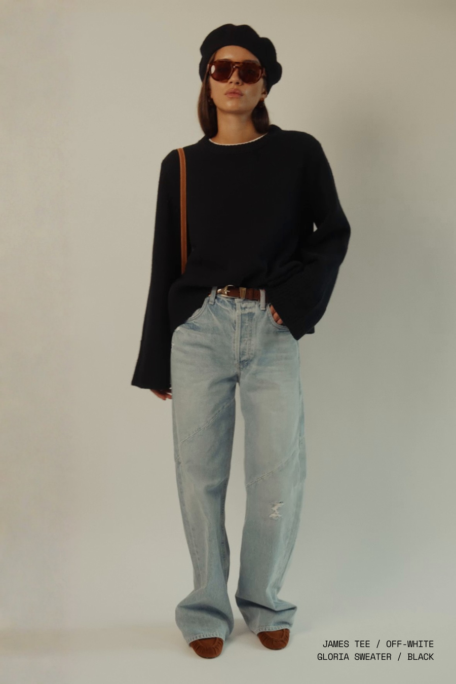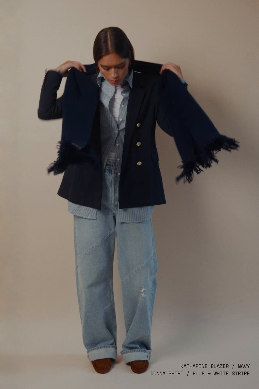 Marilyn Accordion-Pleated Midi Skirt in Denim