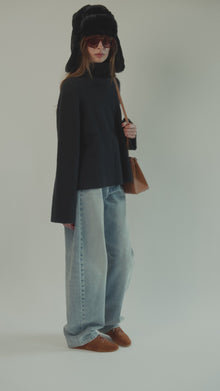 Convertible crew-neck sweater with detachable turtleneck in a 5-ply cashmere blend, 3 gauge knit, with cardigan stitch details, functional button-on design, and long ribbed hems, cuffs, and collar.